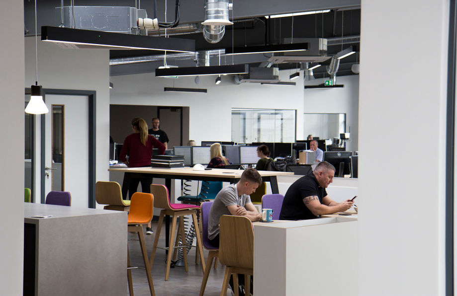 Staff wellbeing and increased efficiency has been at the heart of the design, with a spacious and flexible office-space providing high quality showers, wash rooms, cloak rooms, coffee bar and catering standard kitchens. The new production space layout has been calculated and coordinated to provide the most efficient work flow, with minimal disruptions and distances.